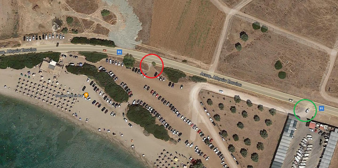 Το Σάββατο 26.6, η Περιφέρειας Αττικής τοποθέτησε μεταλλικό στηθαίο, μεταξύ του χλμ 61.5 και 62, της παραλιακής λεωφόρου Αθηνών-Σουνίου όπου είχε διανοιχθεί μία επικίνδυνη είσοδος (με κόκκινο κύκλο η επικίνδυνη είσοδος, ενώ με πράσινο κύκλο η κανονική και ασφαλής είσοδος) των οχημάτων προς την παραλία του Χάρακα. Η συγκεκριμένη είσοδος βρισκόταν μετά από δεξιά στροφή και η ορατότητα περιοριζόταν ακόμη περισσότερο από την παρακείμενη βλάστηση. Η ειδοποίηση προς την Περιφέρεια Αττικής έγινε την Παρασκευή 25.6 από τον Συνεταίρο μας κ.Δημοσθένη Καραίσκο, τον οποίο ευχαριστούμε, και η Περιφέρεια Αττικής επιβεβαίωσε άμεσα για την επικινδυνότητα του συγκεκριμένου σημείου και απέκλεισε την πρόσβαση με κορδέλες και κώνους εντός τριών (3) ωρών από την υποβολή του αιτήματος. Ιδιαίτερα οφείλουμε να ευχαριστήσουμε την Περιφέρεια Αττικής, όπου στα πλαίσια των αρμοδιοτήτων της, απέτρεψε τον μεγάλο κίνδυνο που ελλόχευε στην παραλία του Χάρακα.[15/6/2021] Αίτημα υπογειοποίησης δικτύου ΔΕΔΔΗΕ και ΟΤΕ με χρηματοδότηση από το ΕΣΠΑ