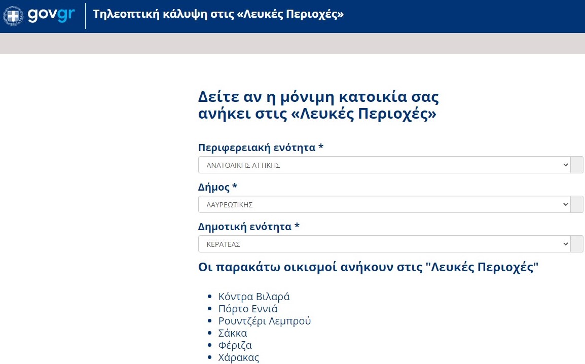 Η υποβολή αιτήσεων τηλεοπτικής κάλυψης για τον κύκλο Νοεμβρίου 2022 ολοκληρώθηκε. Για οποιοδήποτε πρόβλημα παραμένει, θα πρέπει να επικοινωνήσετε με το Γραφείο Αρωγής Χρηστών "Λευκών Περιοχών" στο τηλέφωνο 215-2157840 Δευτέρα έως Παρασκευή 09:00 - 17:00 ή με e-mail στη διεύθυνση helpdesk@tvcoverage.gr[3/1/2023] Αλλαγή δρομολογίου δημοτικού λεωφορείου Λεγραινών- Λαυρίου